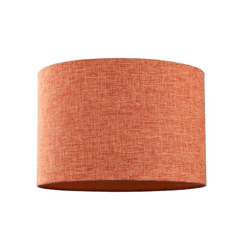 Happy Homewares Contemporary and Sleek 12 Inch Rustic Orange Linen Fabric Drum Lamp Shade 60w Maximum | 30cm Diameter | for Table Lamp or Pendant