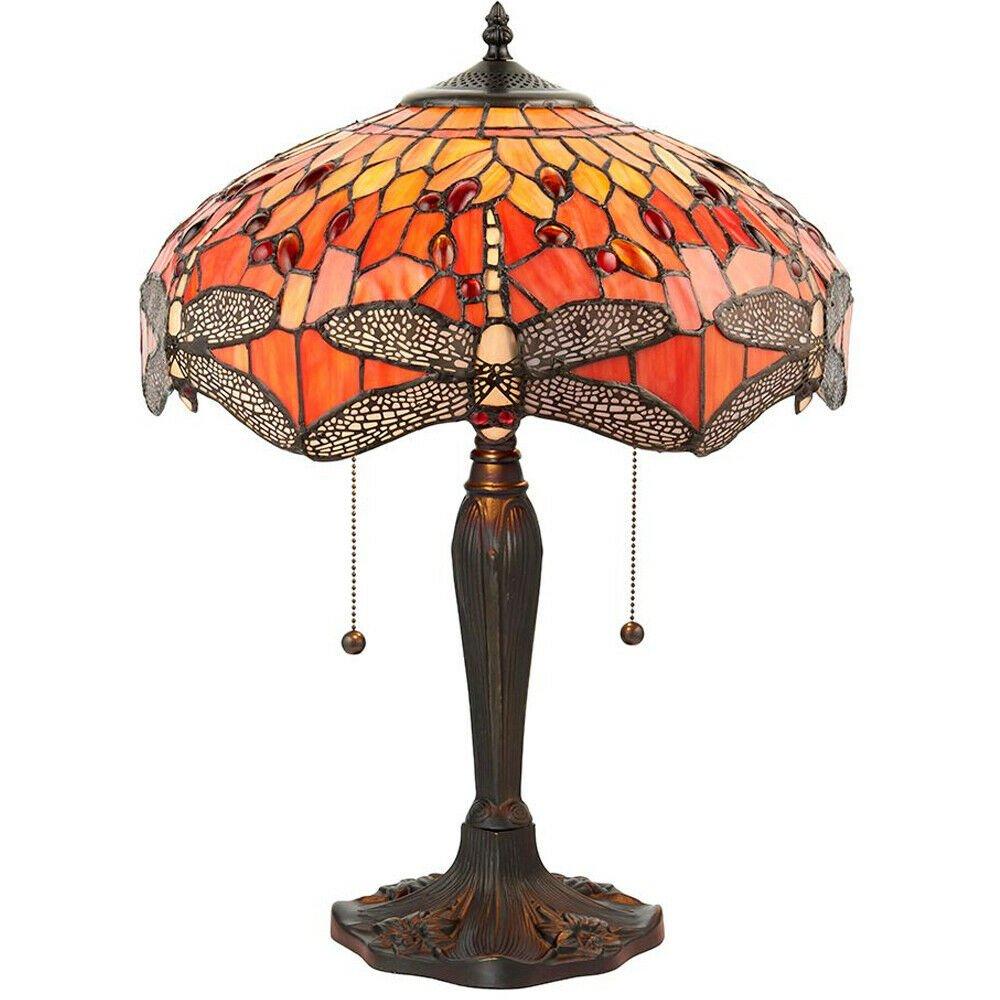 Tiffany Glass Table Lamp Light Dark Bronze Base & Orange Dragonfly Shade i00195