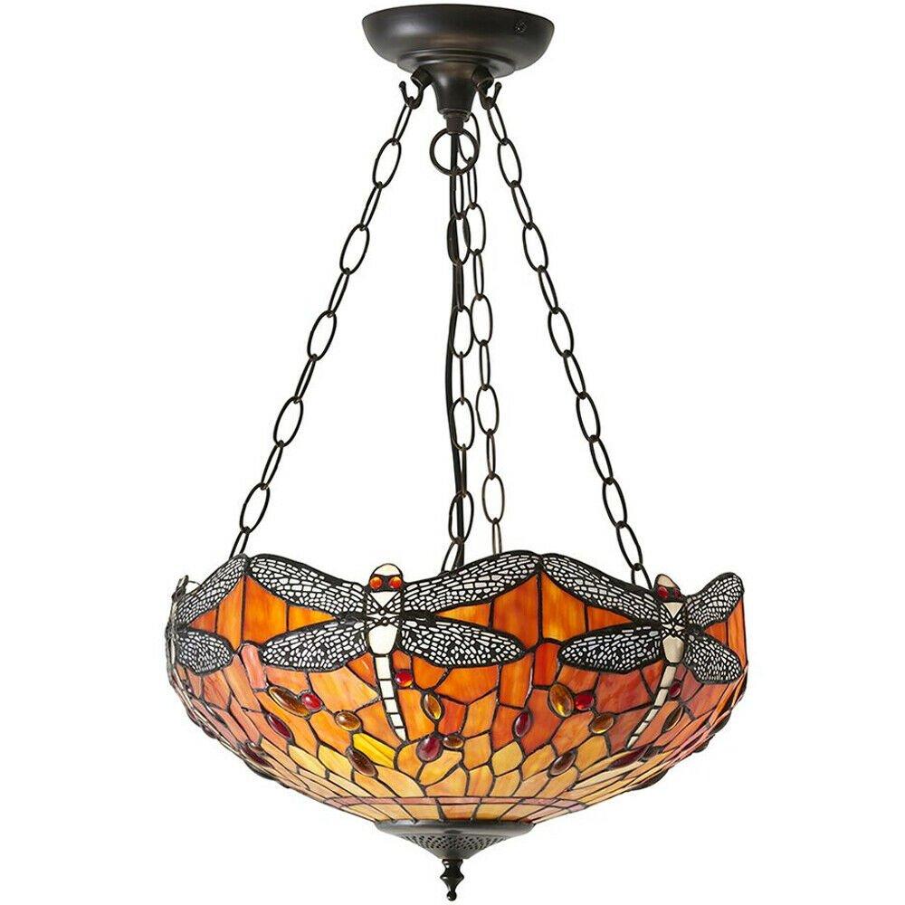 Tiffany Glass Hanging Ceiling Pendant Light Orange Dragonfly 3 Lamp Shade i00113