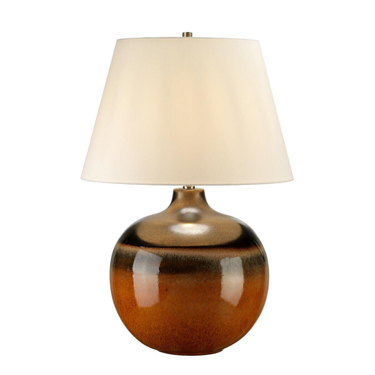 Table Lamp Orange & Brown Glaze. Cream Faux Silk Shade LED E27 60W