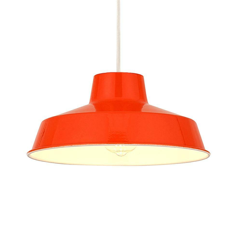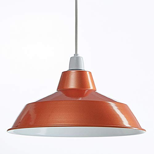 Retro Design Light Shade - Easy Fit Pendant Shade for Existing Ceiling Light - Metal Ceiling Light Shade - White Internal Finish - Lampshade for Ceiling Light - Metal Lamp Shade (Metallic Orange)