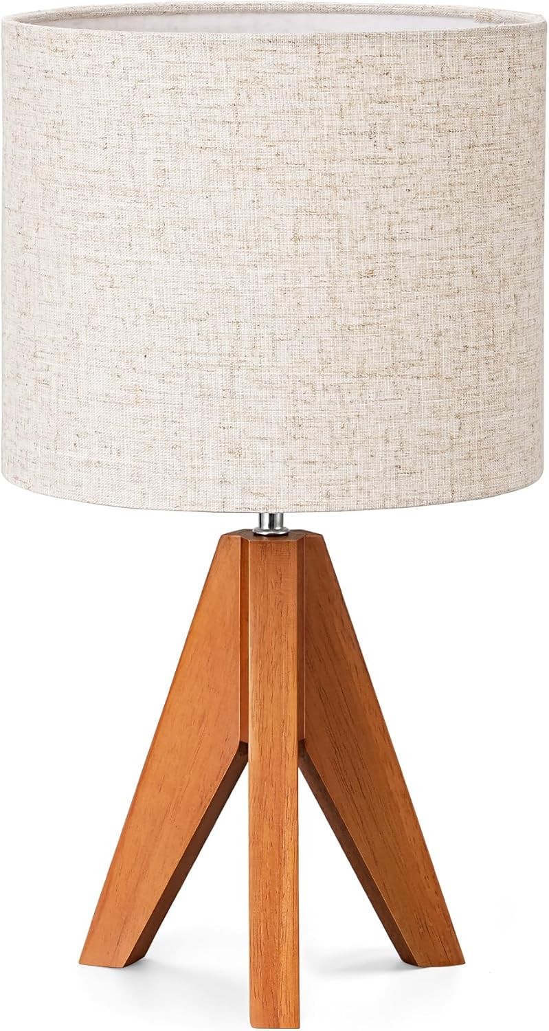 EDISHINE 36cm Bedside Lamp, Orange Tripod Table Lamp with Grey Linen Lampshade,