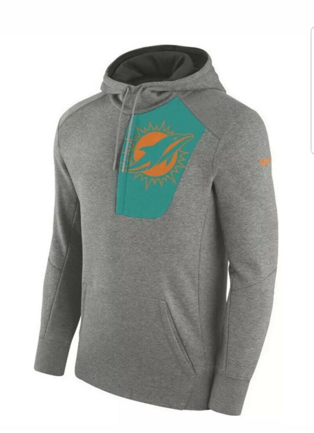 Nike NFL Dolphins Fly Fleece Hoodie Sz L Grey Turquoise Total Orange 851777 063