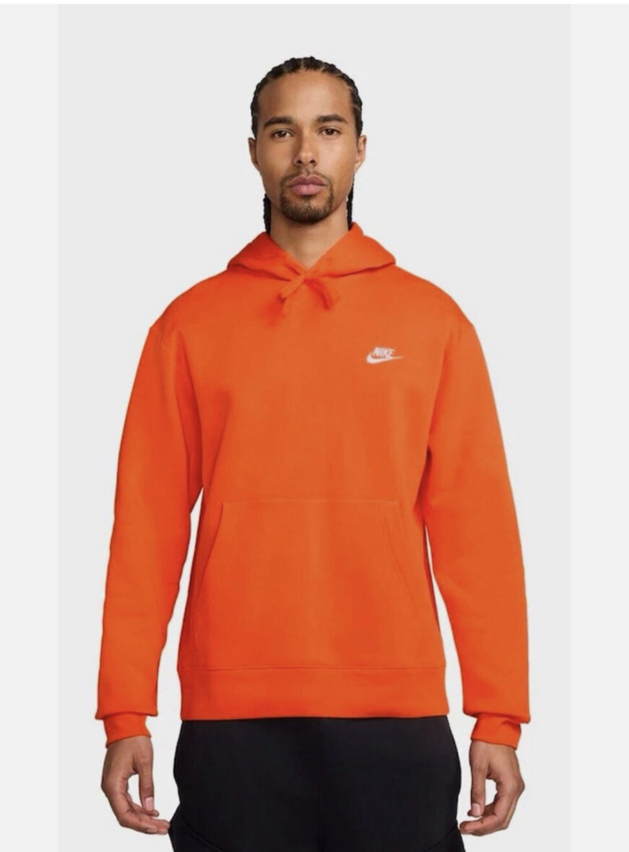 Nike Unisex Club Fleece Pullover Hoodie in Orange - Size Small