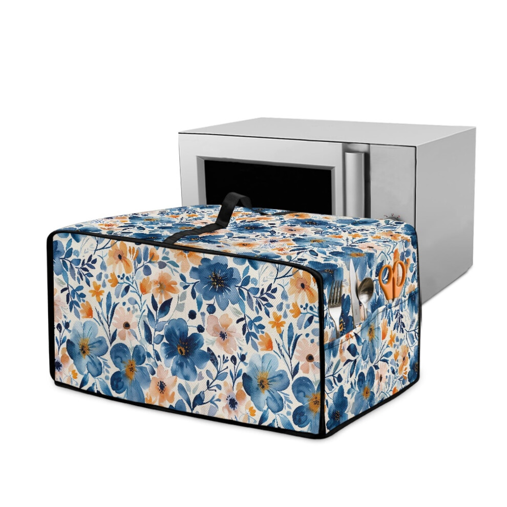 Flower Blue Orange Decorative Toaster Oven Cover, Stain Resistant, Machine Washable, 20.5"x16.5"x10", with Handle & Pockets