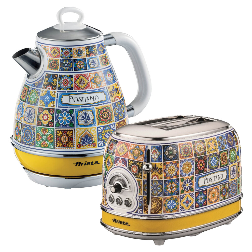 Ariete Positano Jug Kettle & 2 Slice Toaster Set, Italian Tile Design