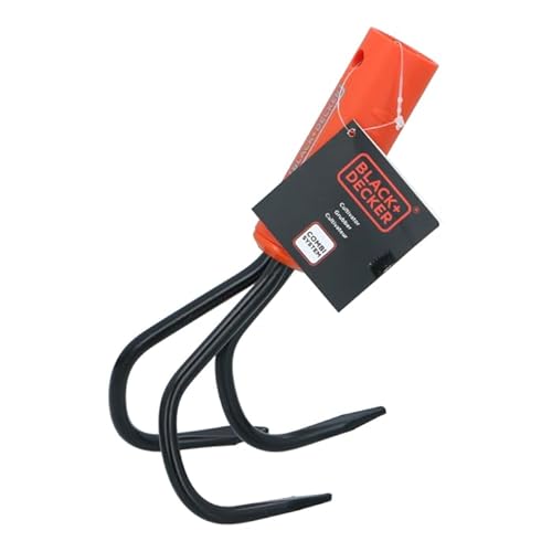 BLACK+DECKER Hand Cultivator Combi System - Cultivator with Three Teeth - Garden Toaster for Loosening Soil - Cultivator for Borders and Planters - Orange Black