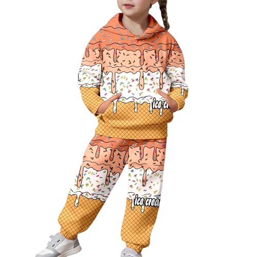 Girls 2 Piece Hoodie Sweatshirt Pants Set Fun Prints Long Sleeve Pullover Tops with Jogger Sweatpants Tracksuit Orange