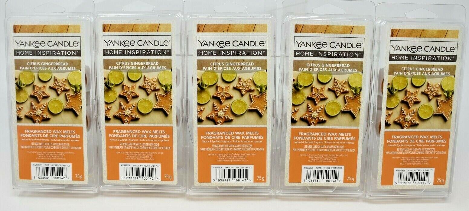 5 X PACKS of Yankee Candle Home Inspiration Citrus Gingerbread Wax Melts 75g