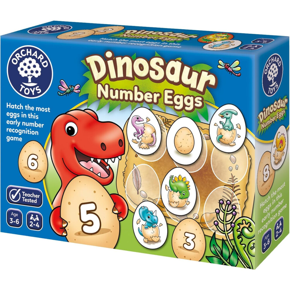 Orchard Toys Dinosaur Number Eggs Number and Counting kids Educational Game For Dinosaur Fans Aged 3-6, Green, Blue, Yellow, Brown