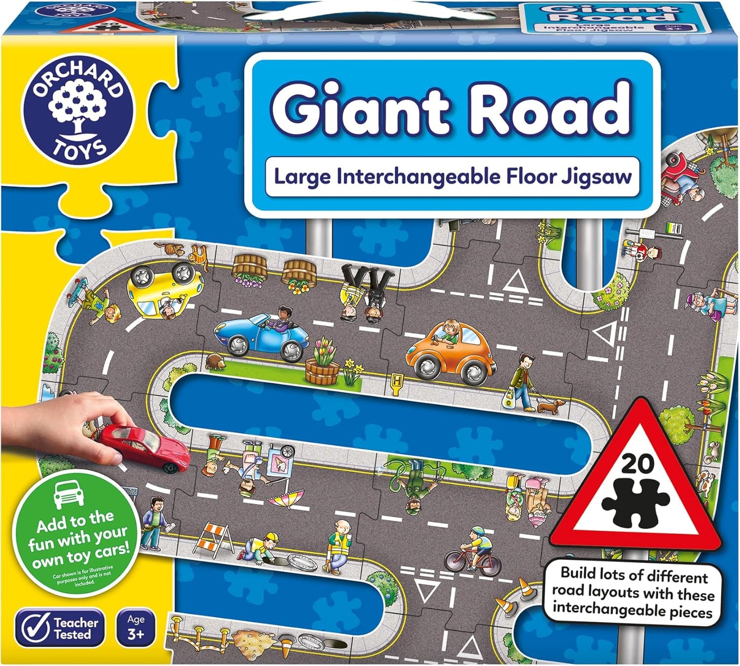 Orchard Toys Giant Road Interchangeable 30pc Shaped Jigsaw Floor Puzzle, Ages 3+, Develops Hand-Eye Coordination