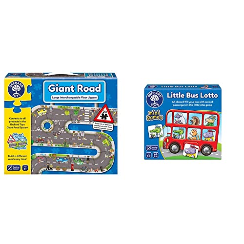 Orchard Toys Giant Road Interchangeable Floor Puzzle & Little Bus Lotto Mini Game, Small and Compact, Travel Game, Fun Memory Game For Ages 3-6, Educational Game Toy