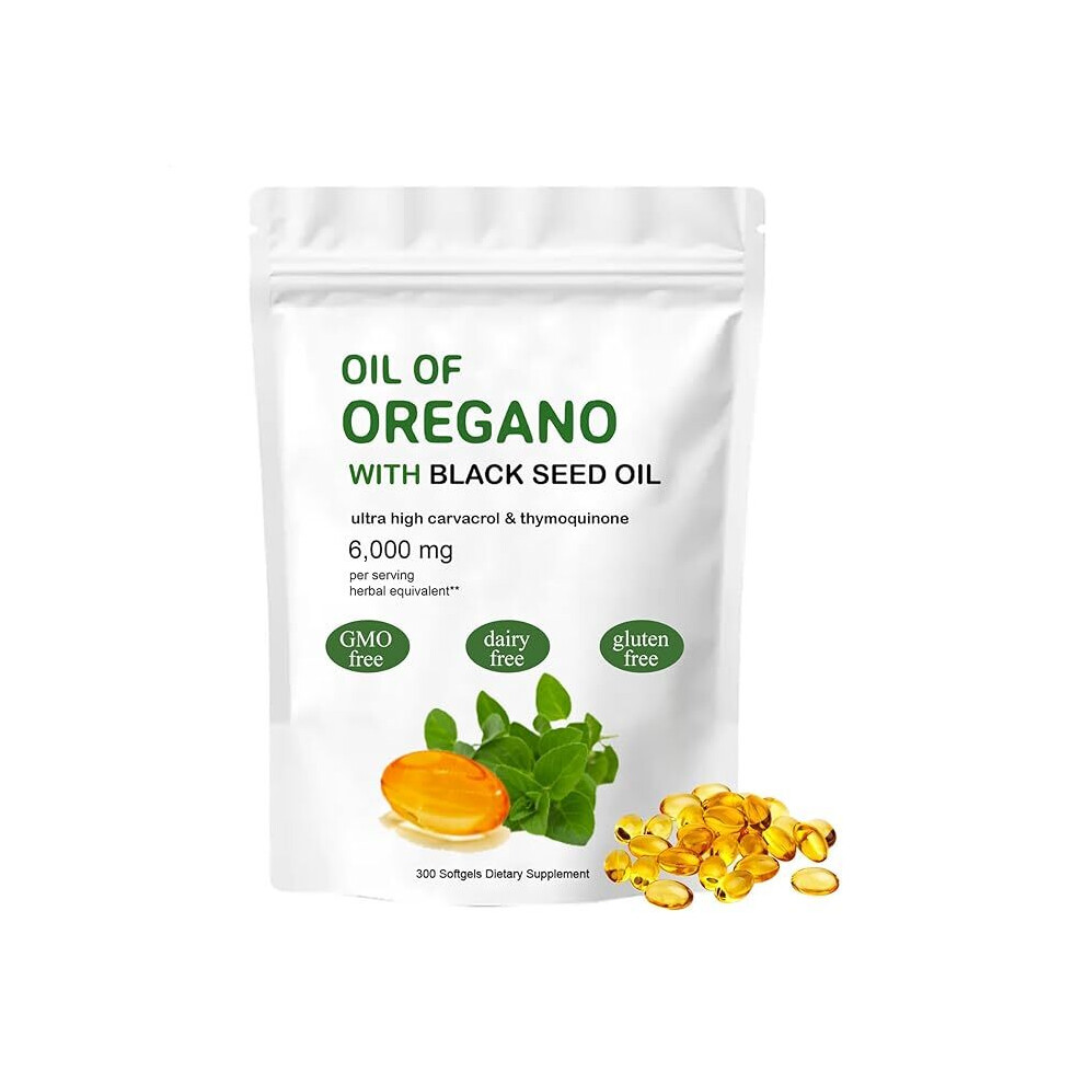 Oil of Oregano Softgels, 2 in 1 6000Mg Oil of Oregano with Black Seed Oil 200mg