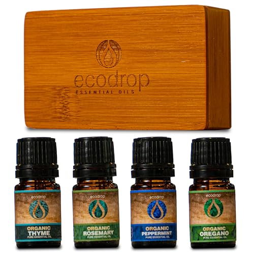 Ecodrop Herbaceous Essential Oil Collection - 4x 5ml Bottles Set | Pure, Natural & Organic Therapeutic Grade Aromatherapy Rosemary, Thyme, Peppermint & Oregano Essential Oil Immunity Diffuser Gift Kit