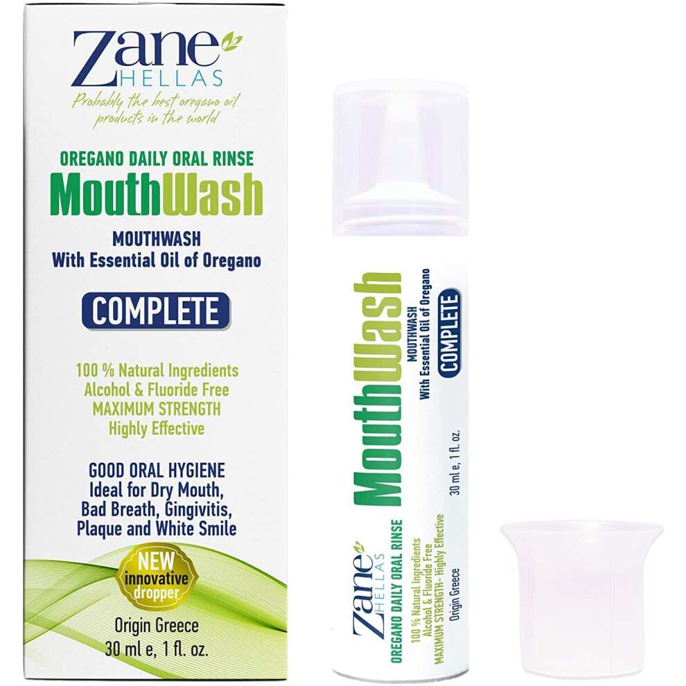 Zane Hellas MouthWash. Oral Rinse with Oregano Oil Power. Ideal for Gingivitis, Plaque, Dry Mouth, and Bad Breath. Alcohol and Fluoride Free