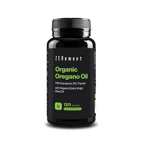 Organic Oregano Oil, Standardised to 70% Carvacrol and 3% Thymol – with Organic Extra Virgin Olive Oil for Better Absorption – 120 Softgel Capsules – Zenement