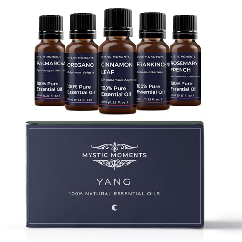 Mystic Moments | Yang Essential Oil Gift Starter Pack 5x10ml | Cinnamon Leaf, Frankincense, Rosemary French, Oregano, Palmarosa | Perfect as a Gift