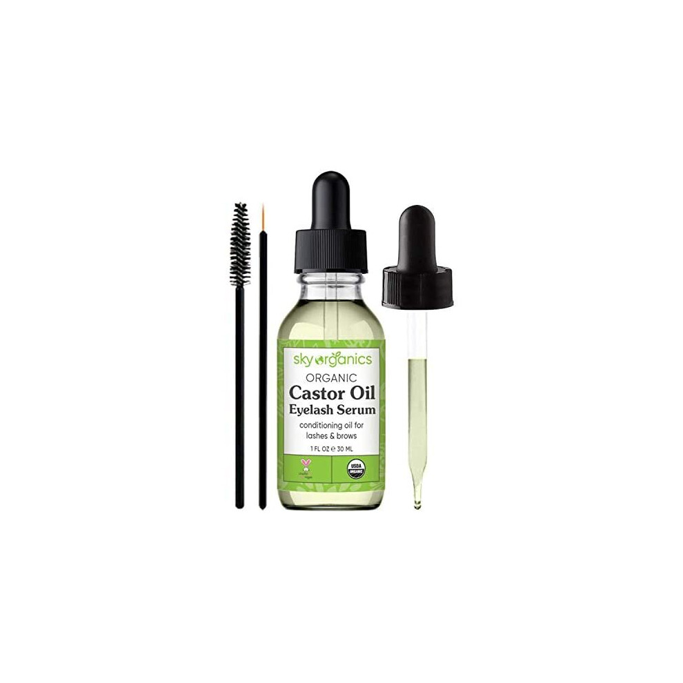Organic Castor Oil Eyelash Serum by Sky Organics (30 ml) USDA Organic Cold-Pressed 100% Pure Castor Oil Natural Eyelash Serum Hexane-free Castor