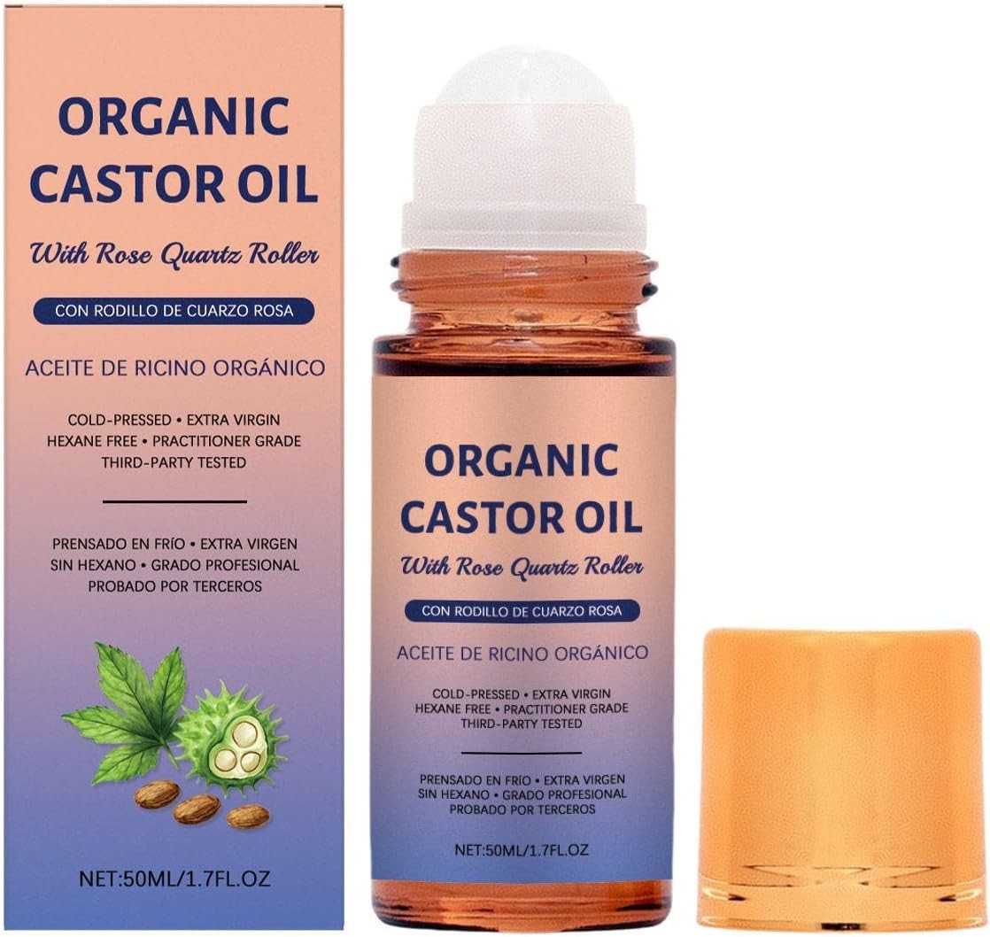 Leczhmyo Organic Castor Oil Roll on for Belly, Face, Body, Under Eyes– Certified Organic, Cold Pressed, Hexane Free, Unrefined – 3 Glass Bottle Pure Roller Ball Castor Oil to Moisturize Skin, Lips