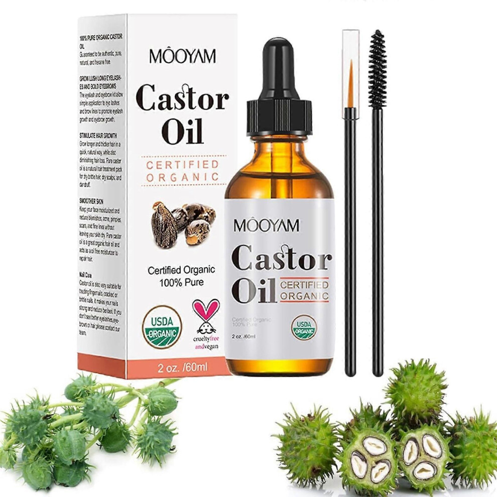 (2PCS) Organic Castor Oil, 100% Pure Castor Oil, Castor Oil Organic Cold Pressed Unrefined, Natural Castor Oil For Hair, Eyelashes, Eyebrows, Skin Moi