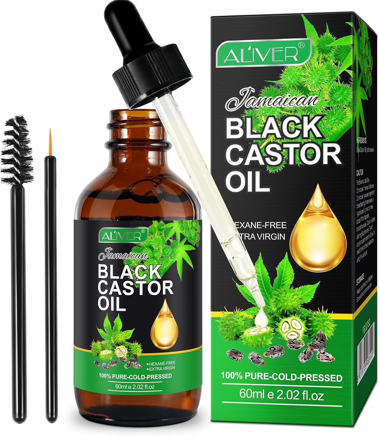 2Pack Jamaican Black Castor Oil for Hair Growth,Thicker Eyelashes & Eyebrows,Organic Castor Oil for Face,Body & Skin,100% Pure Cold Pressed Black Castor Oil,Hair Nourishing Oil