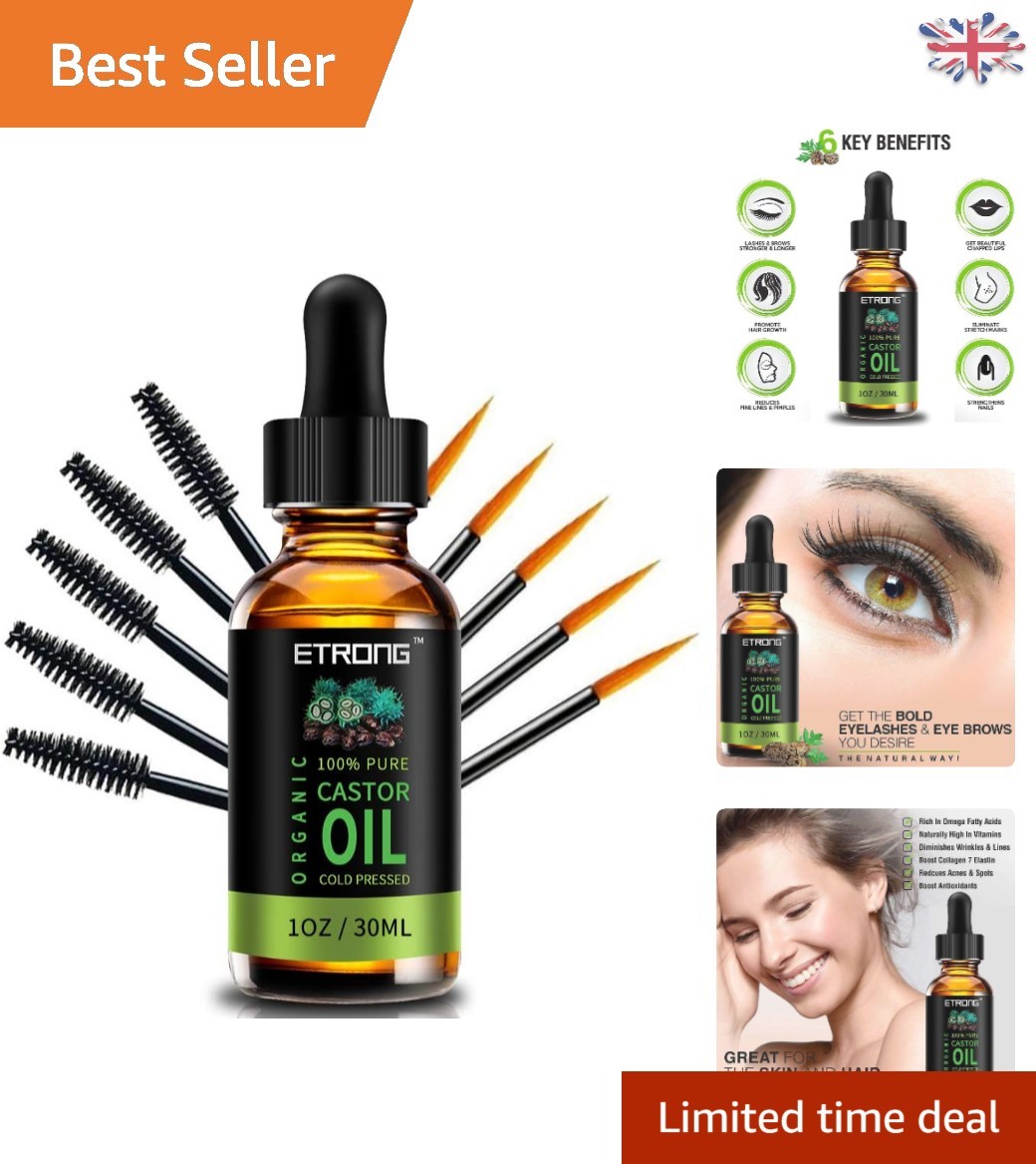 Organic Cold-Pressed Castor Oil 30ml with Brushes - Hair, Skin, and Nail Booster