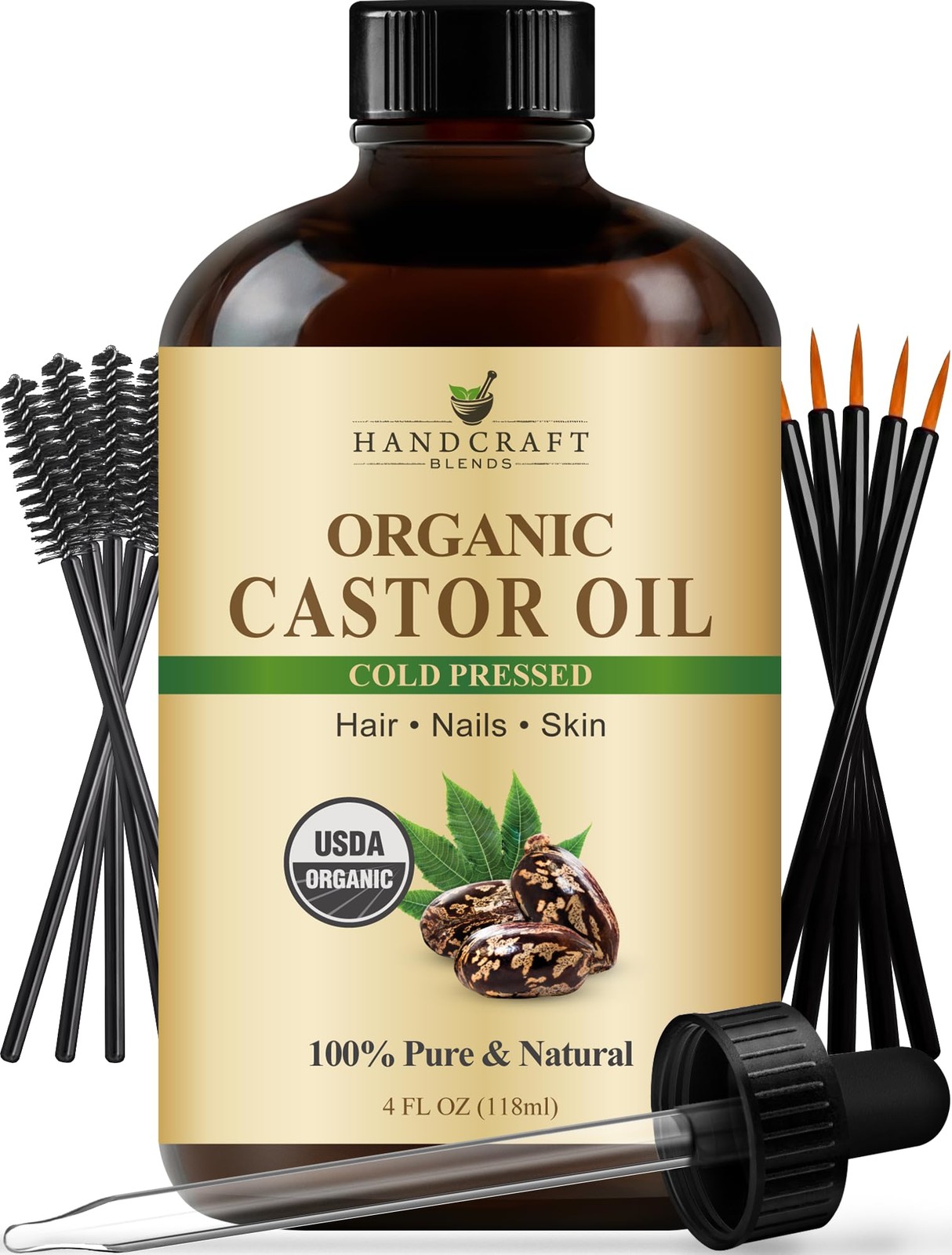 Handcraft Blends Cold-Pressed Organic Castor Oil in Glass Bottle with Lash