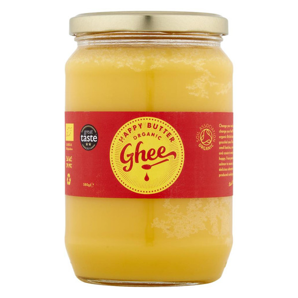 HAPPY BUTTER Organic Ghee Grassfed British Clarified Butter Glass JAR 300g