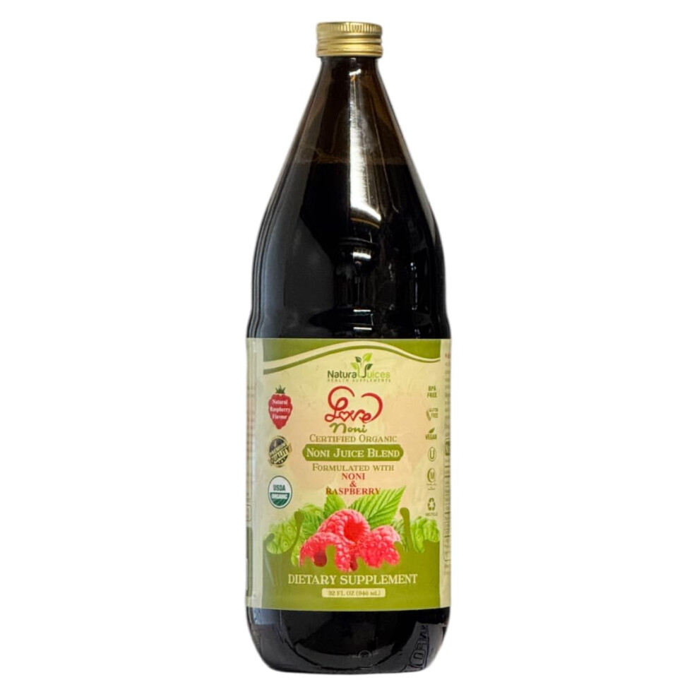 Natural Juices Organic Certified LoveNoni Juice Blend Noni Juice with Raspberry Flavour (946mL)