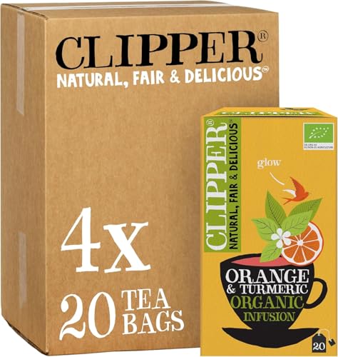 Clipper Organic Turmeric & Orange Infusions Fruit Teabags / 80 Infusions Tea Bags (4x Boxes of 20) / Caffeine-Free Herbal Tea/Natural, Unbleached, Plant Based