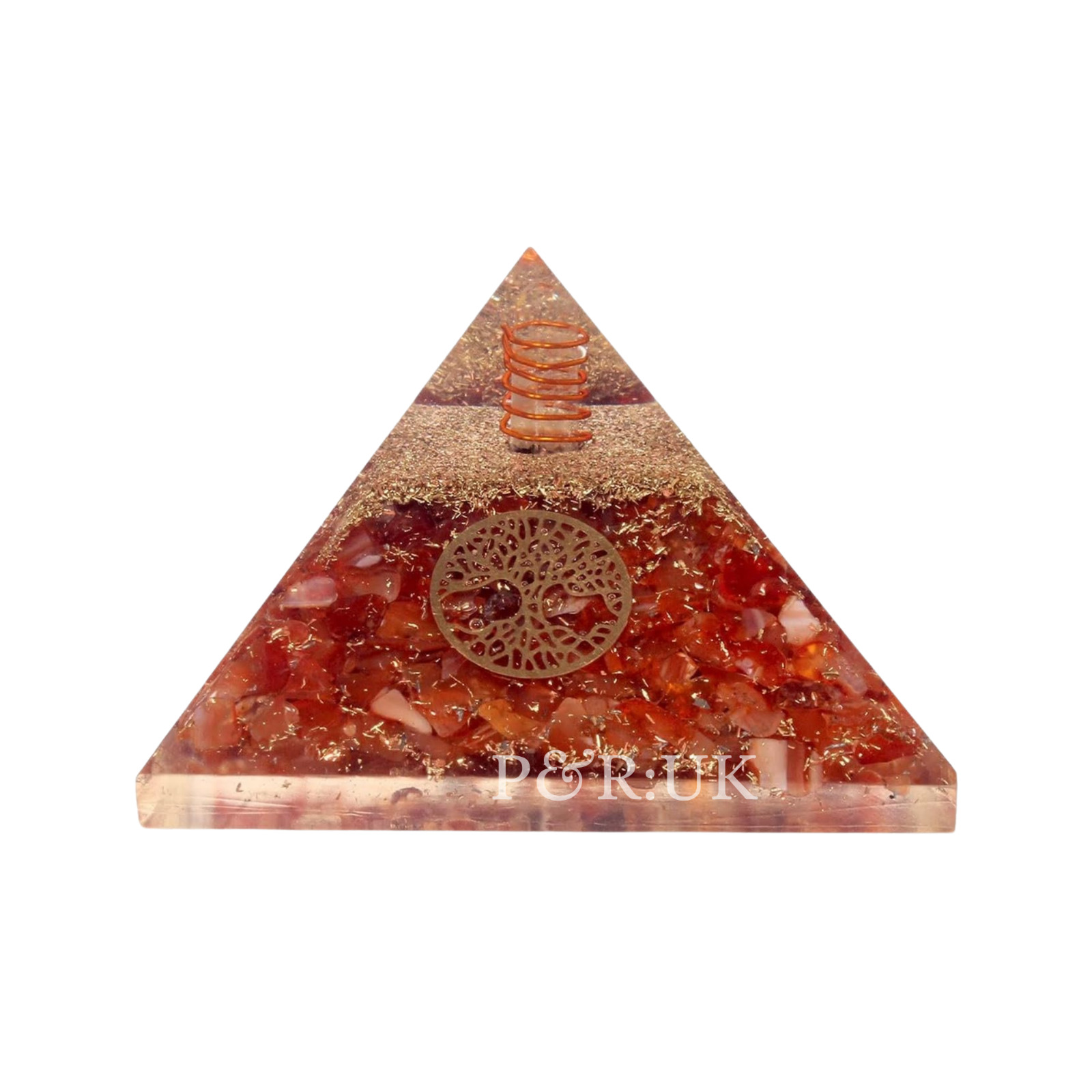 Tree of Life Red Carnelian Orgone Pyramid,Reiki Chakra Energy Crystal Healing