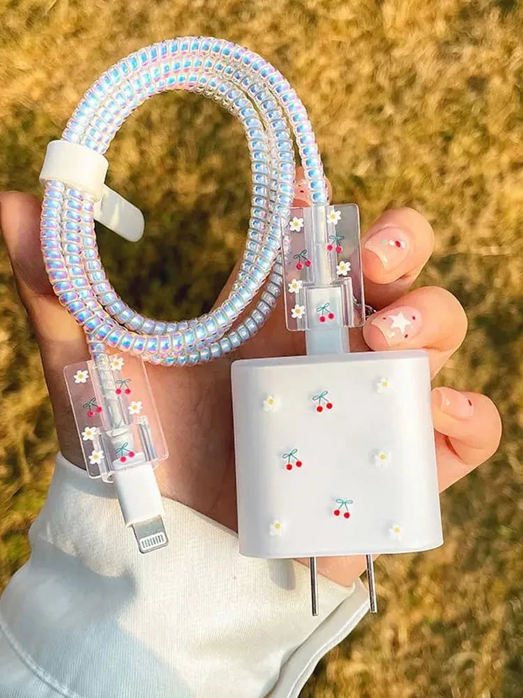 Cherry Frosted Cable Charger Protector Cover For IPhone IPad 18W 20W Original Charger New Data Line Spiral Winder Protective