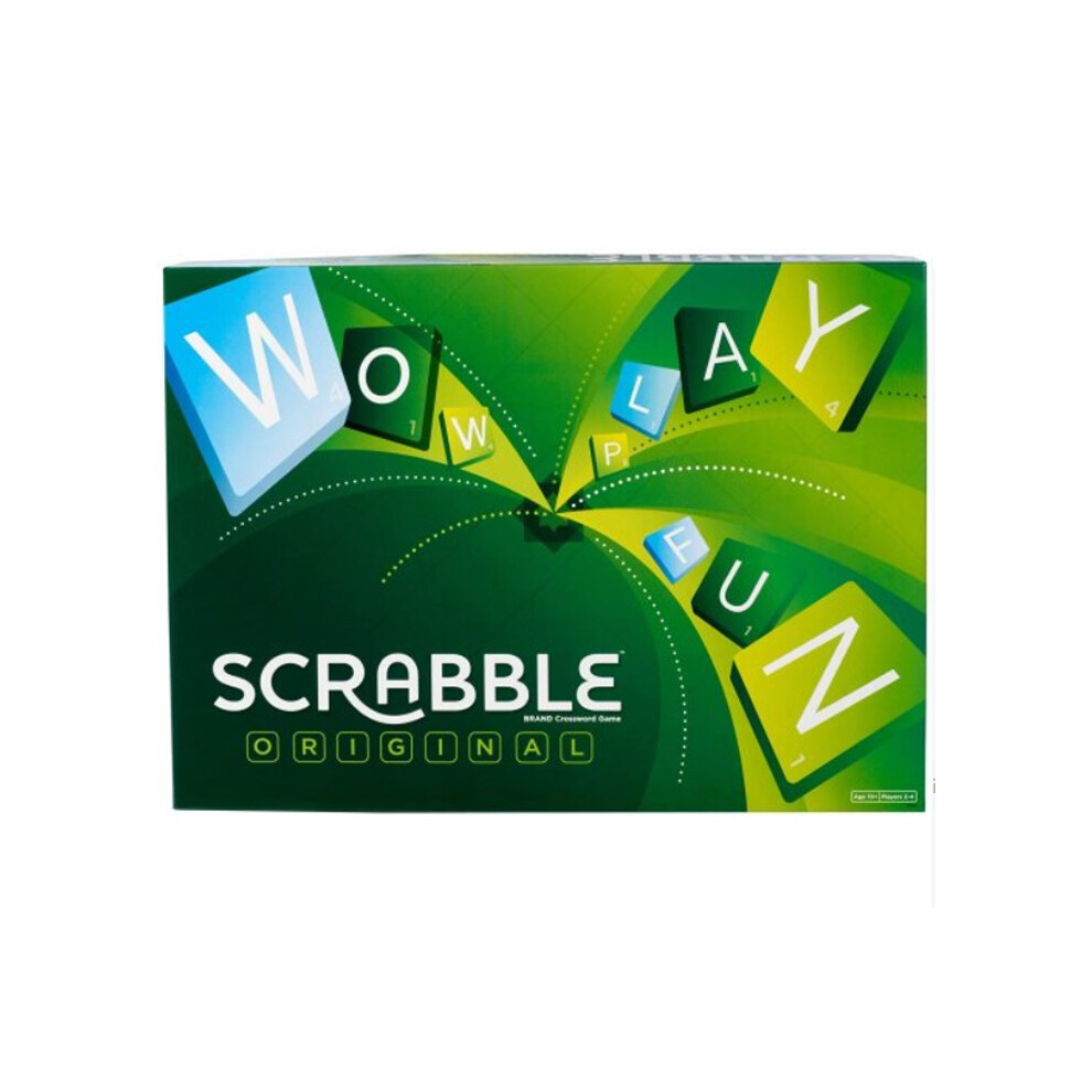 Mattel Games Scrabble, English Version, Original Classic - Crossword Board Game, 2-4 Players, Includes Playing Board, 4 Racks, 100 Letter Tiles, a
