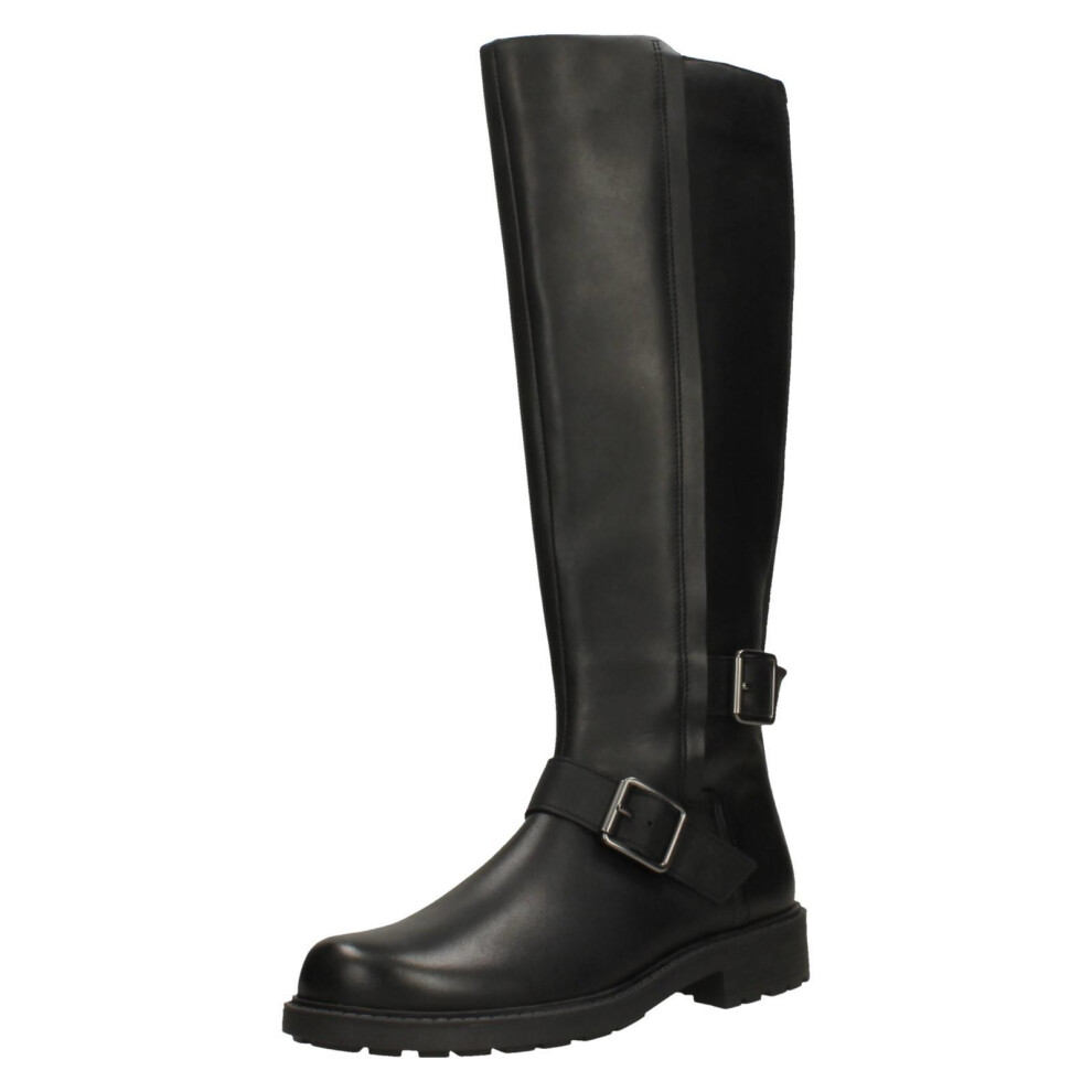 (Black, UK 4) Ladies Clarks Buckle Detail Knee High Boots - Orinoco2 Tall