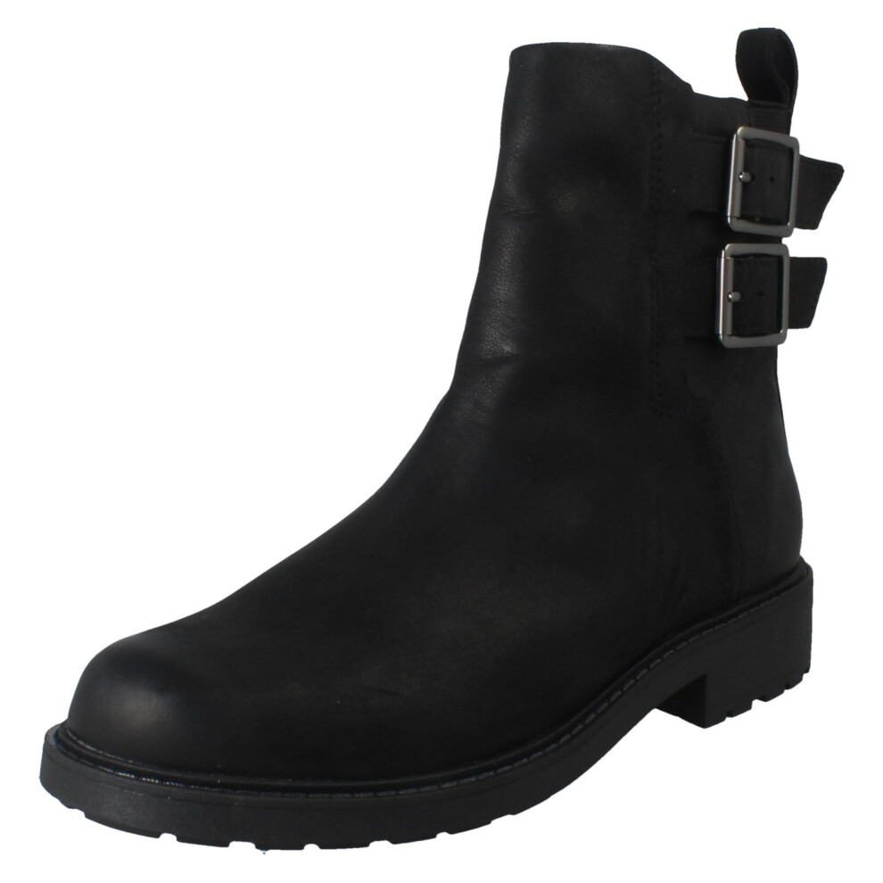 (Black, UK 7) Ladies Clarks Buckle Detailed Zip Fastening Leather Ankle Boots - Orinoco2 Bay