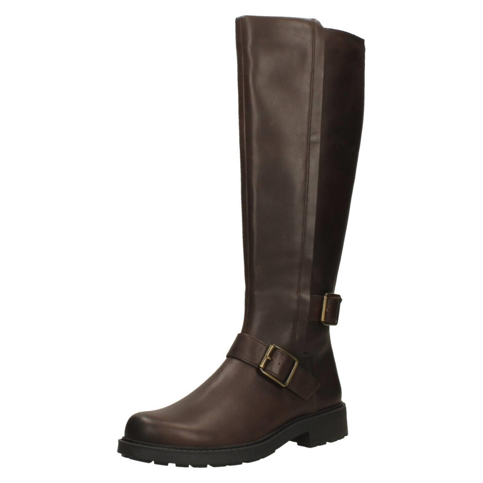 (Brown, UK 8) Ladies Clarks Buckle Detail Knee High Boots - Orinoco2 Tall