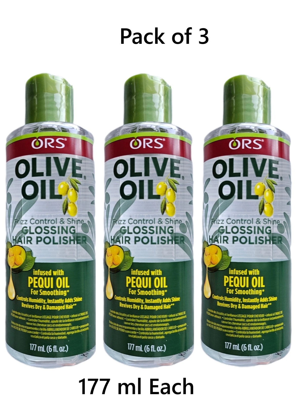 3 X ORS Olive Oil Anti-Frizz Glossing Hair Polisher infused with Pequi Oil 177ml
