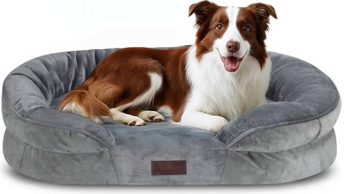 KSIIA Orthopedic Dog Beds Large, Memory Foam Dog Sofa Bed with Removable Cover and Non-Slip Bottom, Washable Pet Cushion with C-Shape Bolster, Pet Pillow with Waterproof Linner, 105x70x18cm Grey
