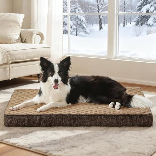Comfort Expression Large Dog Beds Waterproof Orthopedic Foam Dog Beds for Large Dogs Sofa Comfy Pet Bed with Washable Removable Cover & Non-Slip Bottom(Brown)