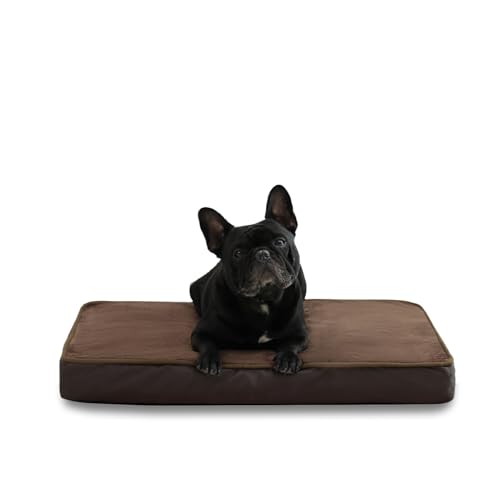 Jaspuriea Medium Dog Bed Washable with Waterproof Removable Cover, Orthopedic Dog Beds with Anti-Slip Bottom, Deluxe Flannel Comfy Dog Crate Mattress, Brown, 75x50x9cm