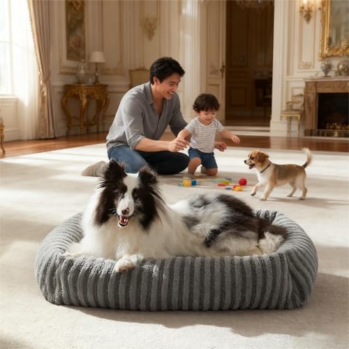 WESTERN HOME Dog Beds Large Washable, Soft Orthopedic Dog Beds with Removable Washable Cover, Extra Large Waterproof Pet Bed with U-Shape Bolster Grey, 127x91x19 cm