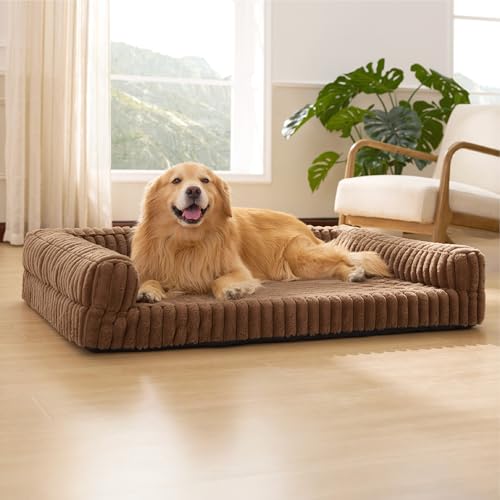 Bedsure Orthopedic Dog Beds Large - 122x89x20cm Waterproof Memory Foam Dog Sofa with Sides, Non-Slip Bottom and Egg-Crate Foam Large Pet Couch Sofa with Washable Removable Corduroy Cover, camel brown