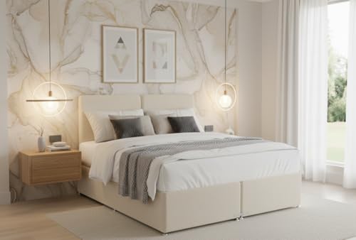 Avalon Zip and Link Divan Bed Set with Orthopedic Mattresses and Headboard – King or Super King Size Divan Bed – Chenille Upholstered Base – Hotel Style Zip Link Bed (Cream, 5ft King)