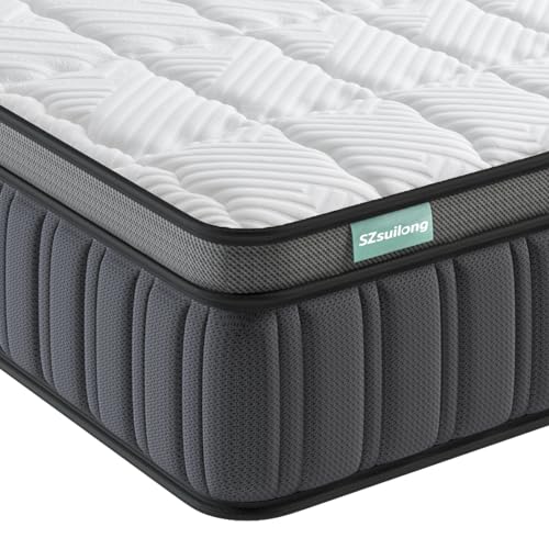 SZsuilong 12 Inch Double Mattress, 4FT6 Hybrid Mattress with Cool Gel Memory Foam and Pocket Sprungs, Orthopedic Mattresses. Medium Firm, 135x190x30cm, 4f 6 by 6ft3