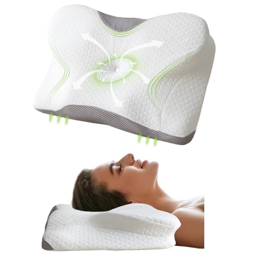 Hapiclody Cervical Pillow for Neck Pain, Memory Foam Pillows Orthopedic Pillow for Shoulder Pain Ergonomic Head Neck Support Pillow for Side/Back/Stomach Sleepers with Cooling Removable Cover