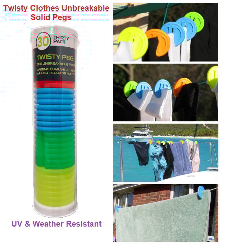 Orwell Twisty Clothes Unbreakable Solid Pegs Pack of 30 UV & Weather Resistant