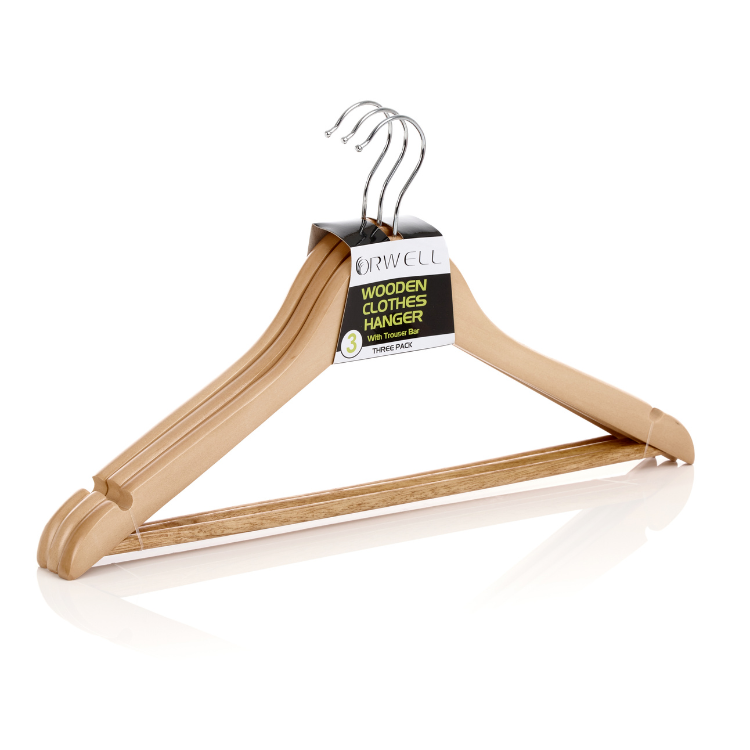 Orwell Wooden Clothes Hanger With Trouser Bar 3 Pack Wishbone style