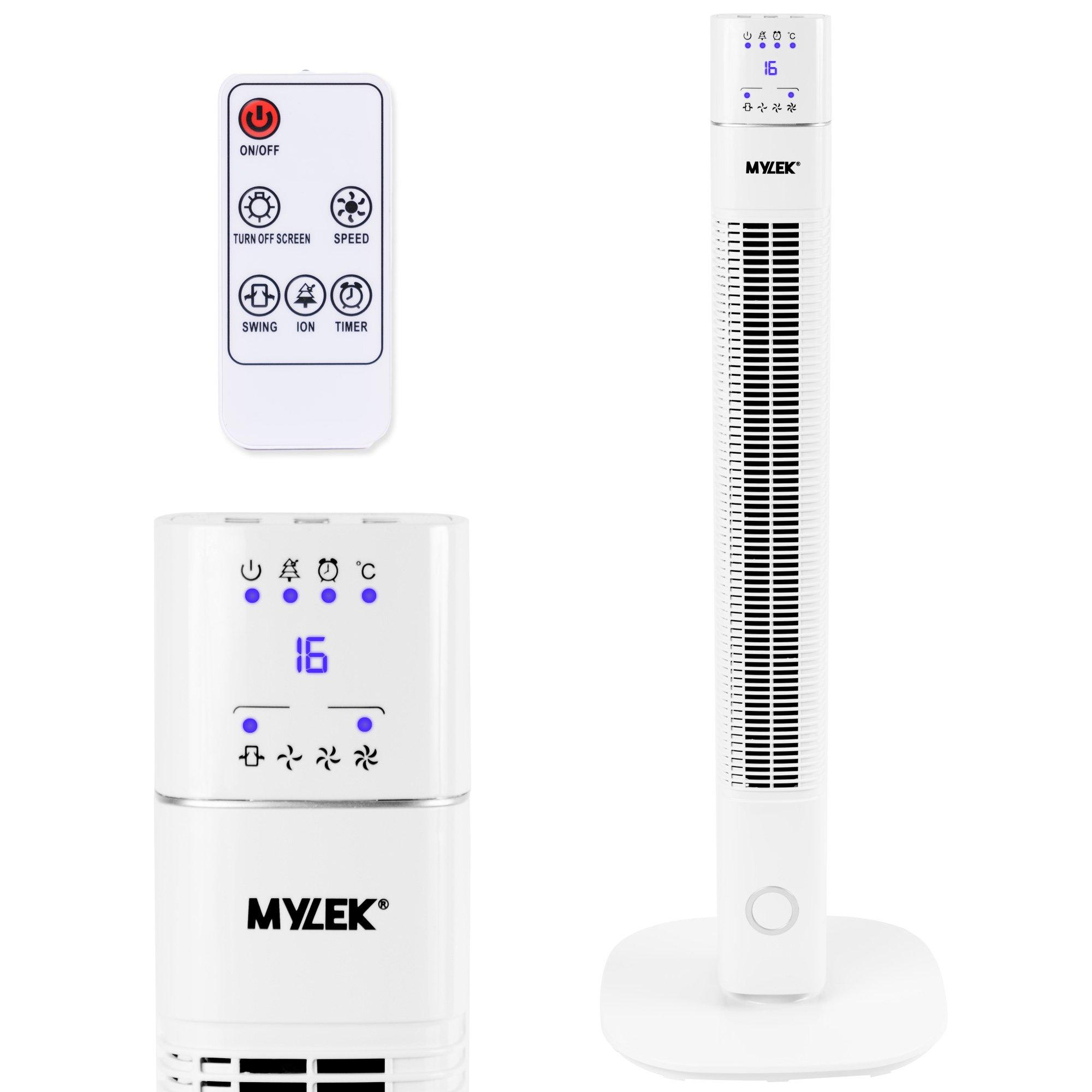 White 36 Inch Oscillating Tower Fan Remote Control Timer & Ioniser 60W