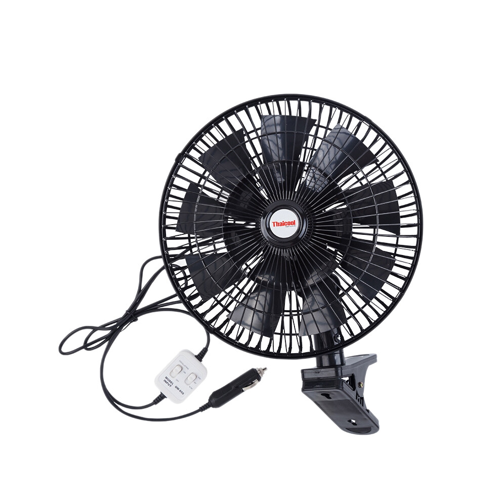 Thaicool 12V Car Electric Fan Adjustable Speed Oscillating Cooling Fans with Clip for Home Travel Car Truck