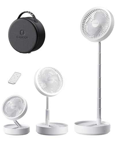 gaiatop Portable Pedestal Fan 16000mAh Power Bank [Max 74h Runtime], Foldable Oscillating Standing Fan, Collapsible Desk Fans, LED Light, Case & Remote Control, Outdoor Travel Camping Office, White
